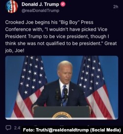 Konferenciju predsednika Džoa Bajdena, verovatni republikanski kandidat Donald Tramp komentarisao je na društvenoj mreži “Istina@.