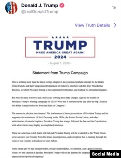 Tramp od početka negira sve optužbe, a pre polaska je na svojoj društvenoj mreži "Truth" napisao da je slučaj politički motivisan i izneo neosnovane tvrdnje da su izbori 2020. bili nepošteni.