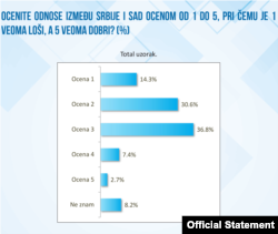 Odnose između SAD i Srbije, građani najviše ocenjuju ocenom tri. Na skali od 1 do 5 odnosi dve države ocenjeni su prosečnom ocenom 2.49.