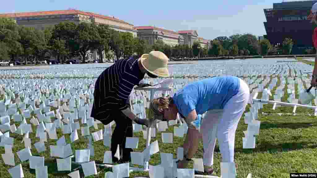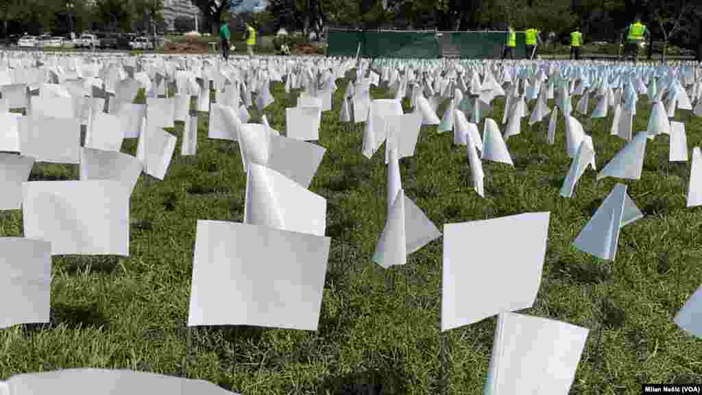 Volonteri i lokalna služba zelenila privode kraju postavljanje više od 600.000 belih zastavica, umetničke instalacije, kojom se odaje počast američkim građanima preminulim od posledica koronavirusa.