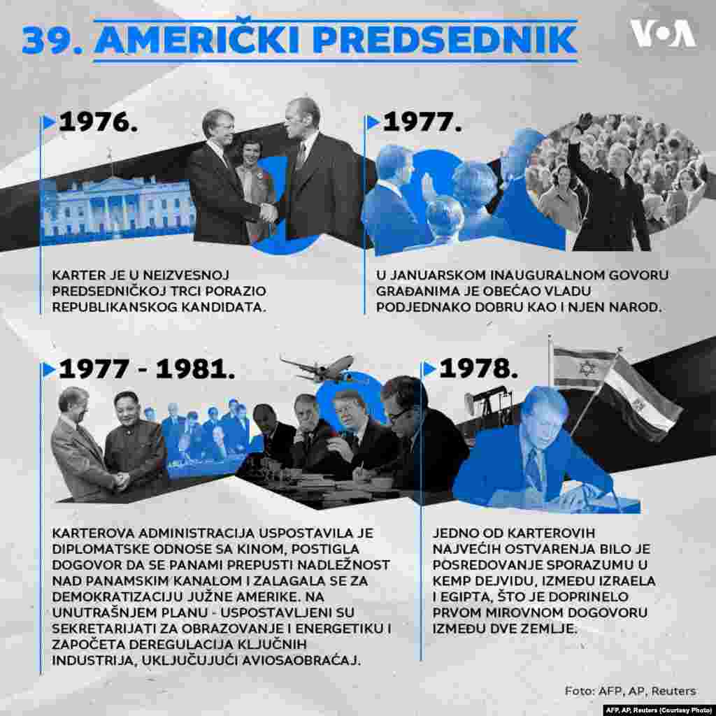 Bivši američki predsednik Džimi Karter, koji je u nedelju preminuo u 101. godini, biće sahranjen uz najviše državne počasti 9. januara. Tog dana biće proglašen i nacionalni dan žalosti, dok će zastave na državnim institucijama biti mesec dana spuštene na pola koplja u čast preminulog predsednika. Karter je bio najdugovečniji američki šef države – koji je u oktobru 2024. proslavio stoti rođendan. ◽Kako je tekao njegov životni put?