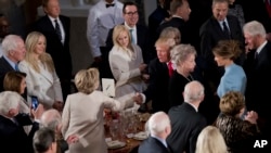 Predsednik Tramp govorio je o Hilari i Bilu Klintonu tokom ručka, navodeći da je počastvovan što su oboje prisustvovali njegovoj inauguraciji. Gosti ručka su ustali i dugo aplaudirali bračnom paru Klinton.