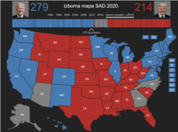 Glas Amerike predviđa da će Džo Bajden osvojiti i šest elektorskih glasova u saveznoj drđžavi Nevada. Bajden je, prema projekcijama vodećih američkih i svetskih medija, uključujući i Glas Amerike, obezbedio nedostižnu prednost u Elektorskom koledžu predviđenim trijumfom u Pensilvaniji, a posle proglašenja kraja trke u Nevadi, bivši potpredsednik SAD sada ima 279 elektorskih glasova naspram 214, koliko ima predsednik Tramp.
