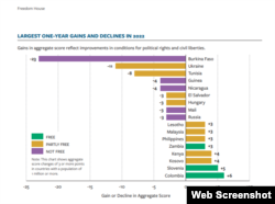 Slobode u celom svetu su u padu 17. godinu zaredom. Ruska agresija dovela je do užasnog kršenja ljudskih prava u Ukrajini. Širom sveta bilo je pučeva i pokušaja da se destabilizuju države kao što su Burkina Faso, Tunis, Peru i Brazil.