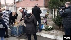 Ploča je otkrivena pred četrdesetodnevni pomen, a okupljeni su položili cveće i palili sveće.