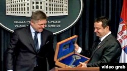 Uručujući danas simbolično svom domaćinu, srpskom premijeru Ivici Dačiću ključ kapije EU, premijer Slovačke Robert Fico je istakao da to predstavlja izraz podrške njegove zemlje Srbiji na putu ka Uniji. A posle razgovora u Beogradu, dva premijera su na zajedničkoj konferenciji za novinare istakli da Srbija ima veliki interes za ulazak u EU, posebno u ekonomskom pogledu.
