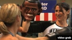 Koliko ljudi može da kaže da je udarilo predsednika? Tu priliku trenutno imaju članovi Vašingtonskog sportskog kluba u Aleksandriji, u državi Virdžiniji, koji po sopstvenom izboru mogu da udaraju Baraka Obamu ili njegovog rivala Mita Romnija.